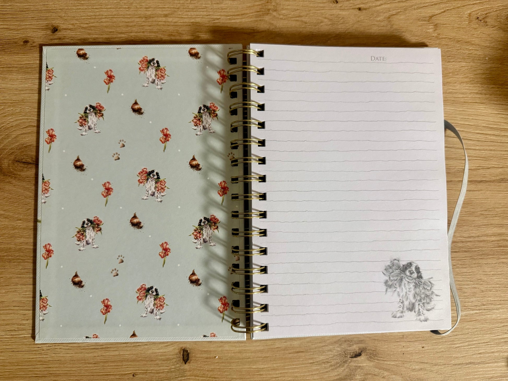 Wrendale Designs - A5 Jegyzetfüzet - Kutyus virágokkal (Kék)