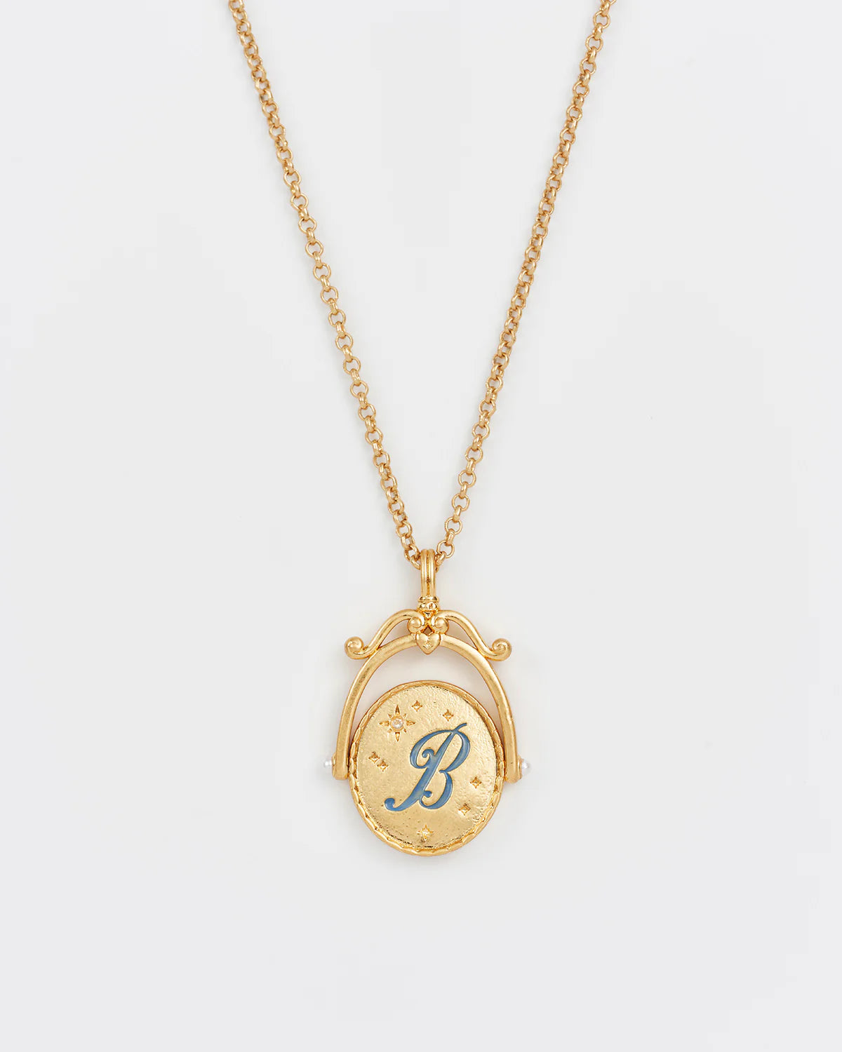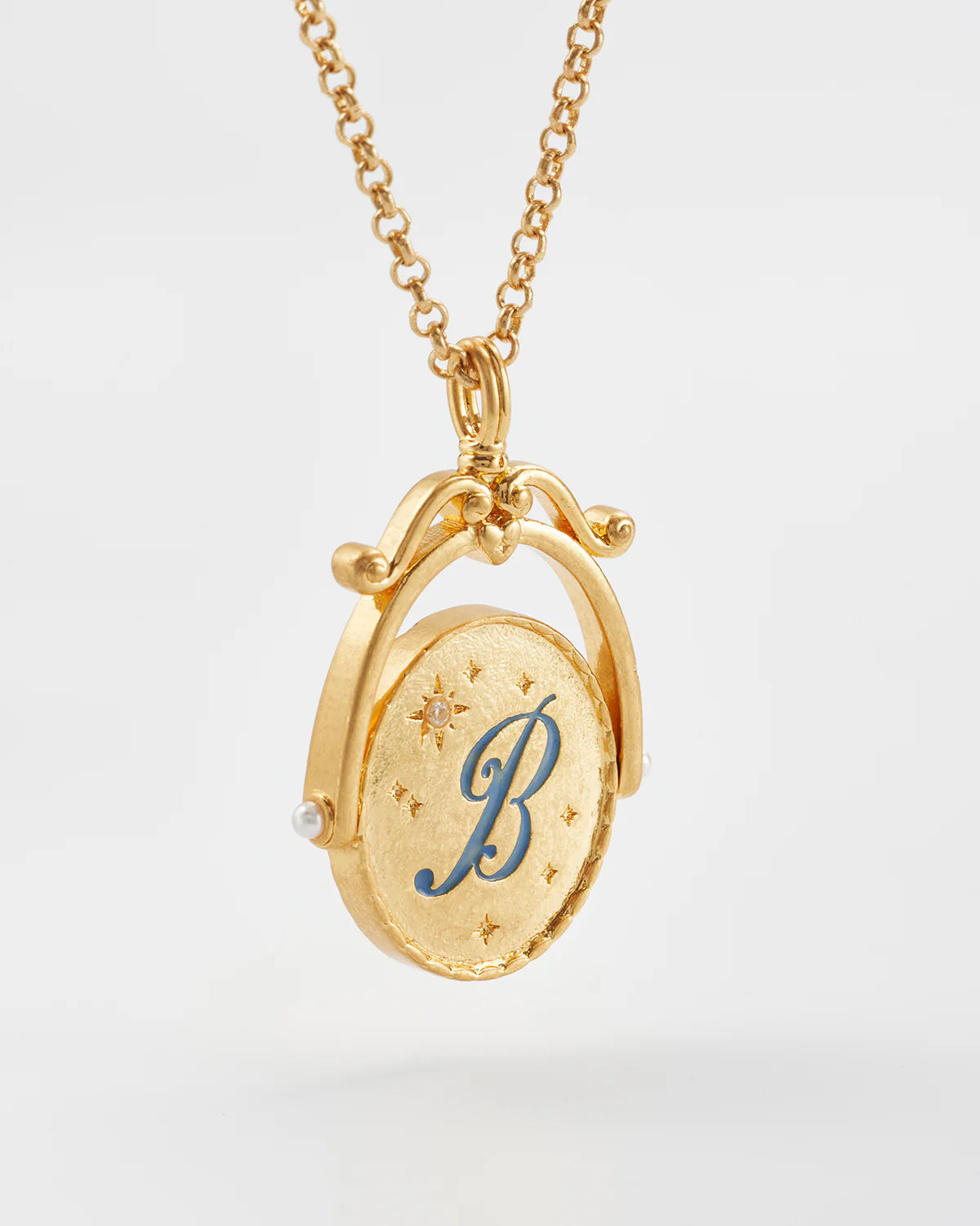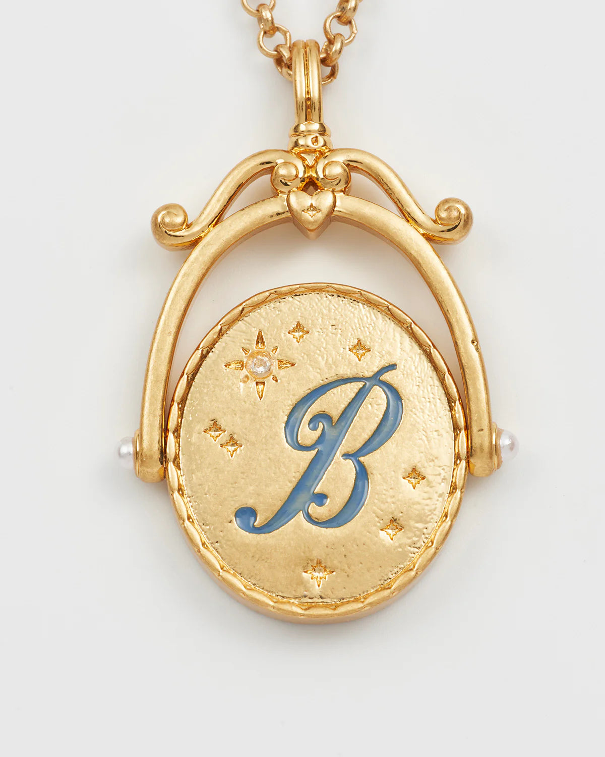 Kétoldalas medál: az egyik oldalán egy klasszikus írott 'B' kezdőbetű látható, a másikon egy finoman kézzel festett harangvirág – a szeretet és a hála szimbóluma. A sokoldalúságot szem előtt tartva tervezett nyaklánc levehető medállal és állítható lánccal rendelkezik.