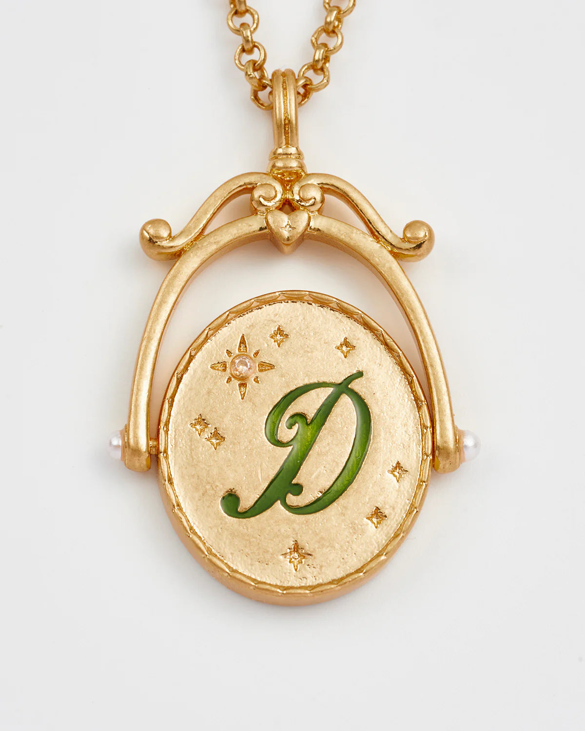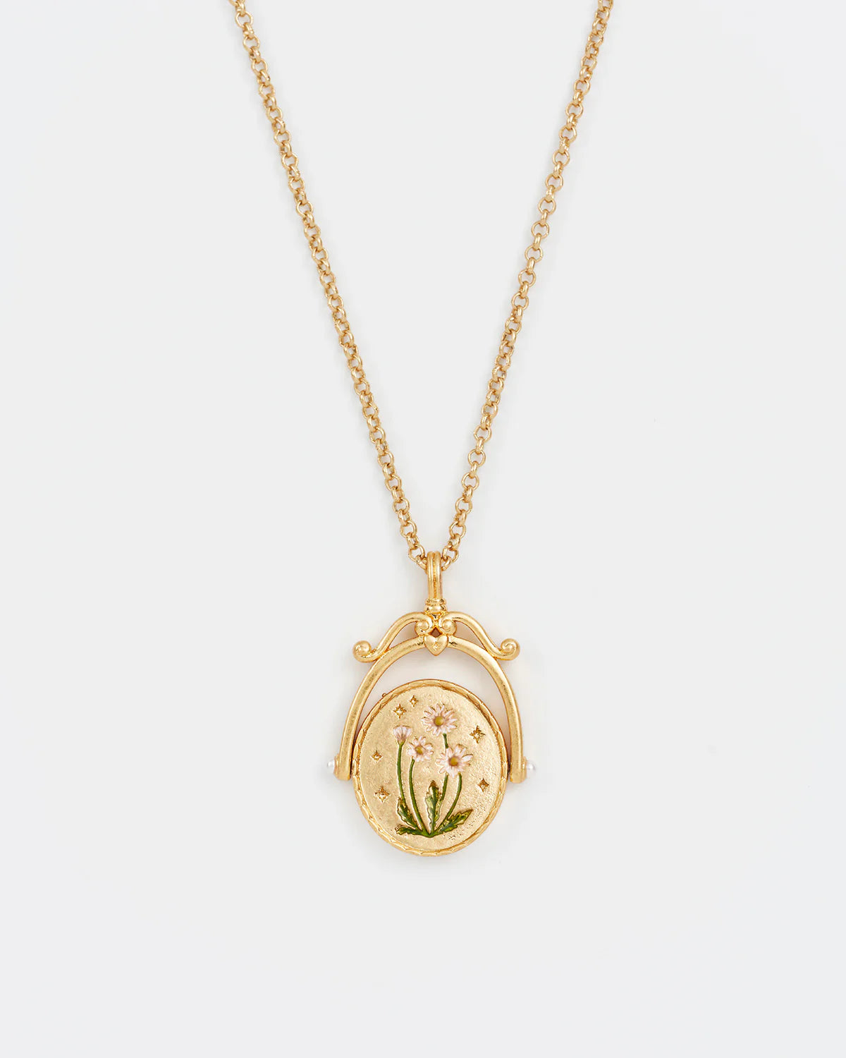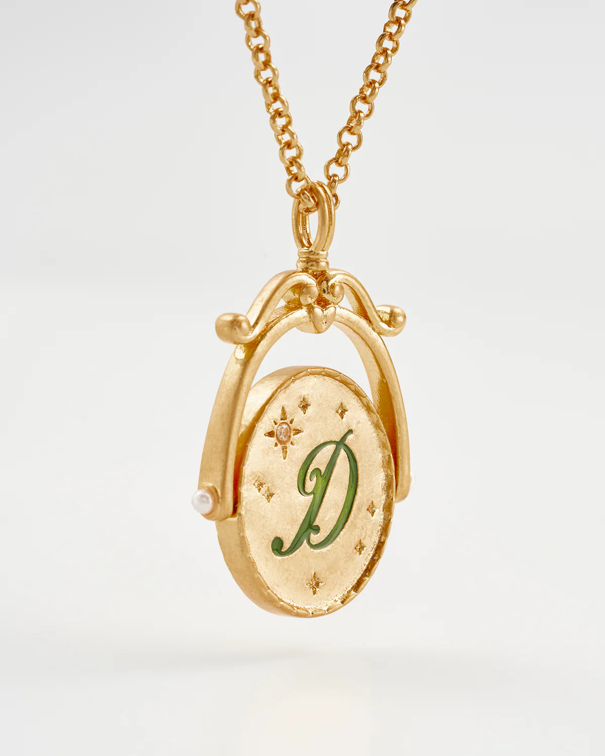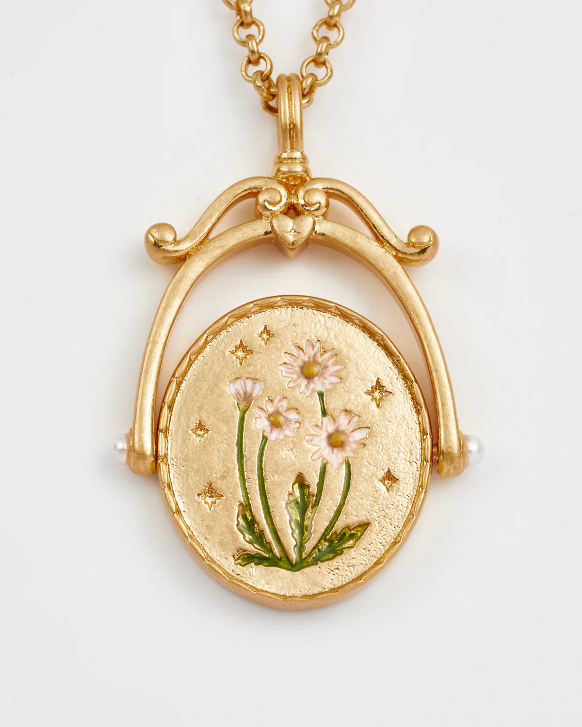 Kétoldalas medál: az egyik oldalán egy klasszikus írott 'D' kezdőbetű látható, a másikon egy finoman kézzel festett százszorszép látható – az örömöt és az egyszerűséget jelképezve. A sokoldalúságot szem előtt tartva tervezett nyaklánc levehető medállal és állítható lánccal rendelkezik.
