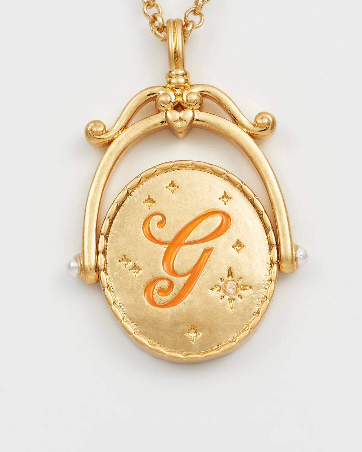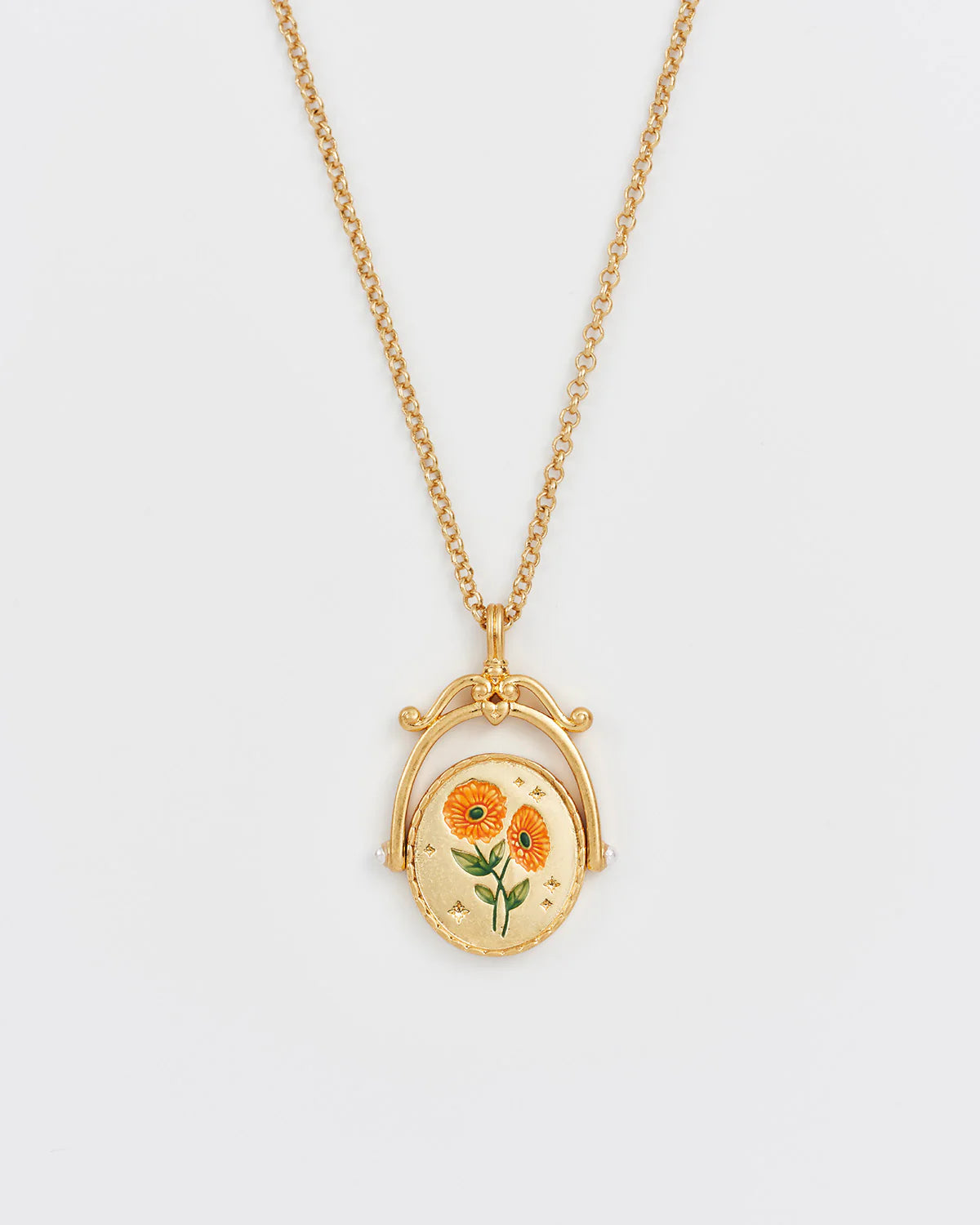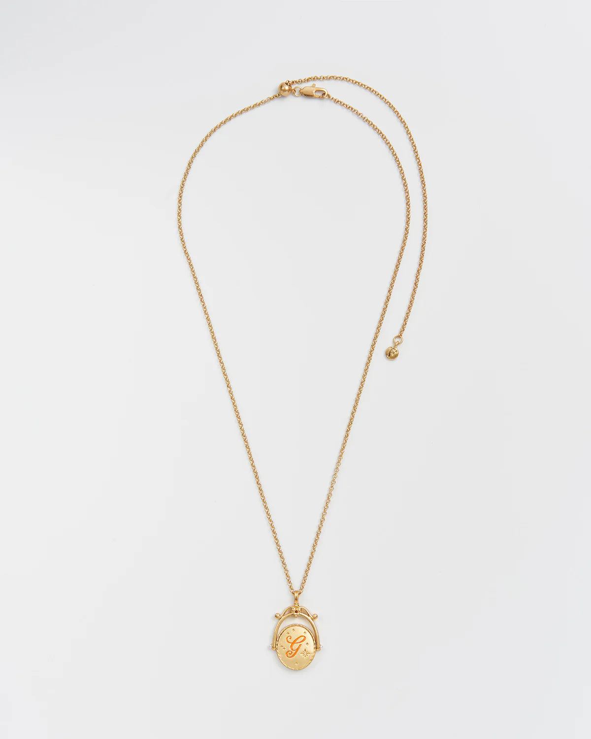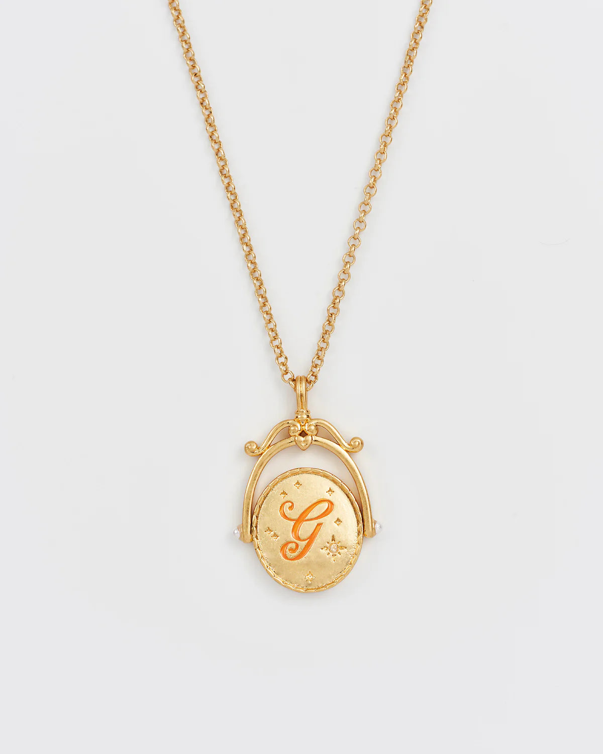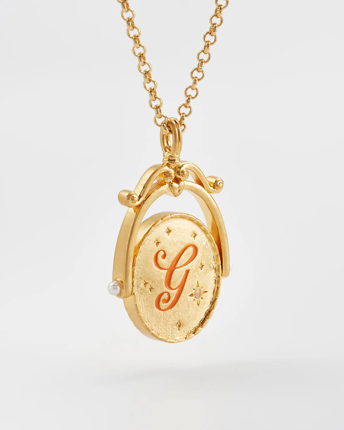 Kétoldalas medál: az egyik oldalán egy klasszikus írott 'G' kezdőbetű látható, a másikon egy finoman kézzel festett gerberával, amely az energiát és az örömöt jelképezi. A sokoldalúságot szem előtt tartva tervezett nyaklánc levehető medállal és állítható lánccal rendelkezik.