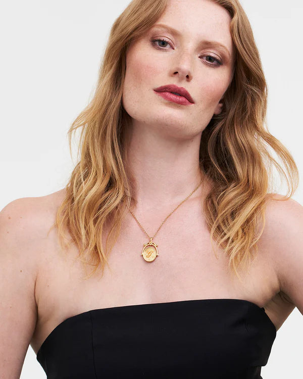 Ez a vintage stílusú aranyozott nyaklánc forgatható medállal egy különleges darab, amely jelentőségteljes ajándék vagy személyes emléktárgy lehet annak, aki viseli.
