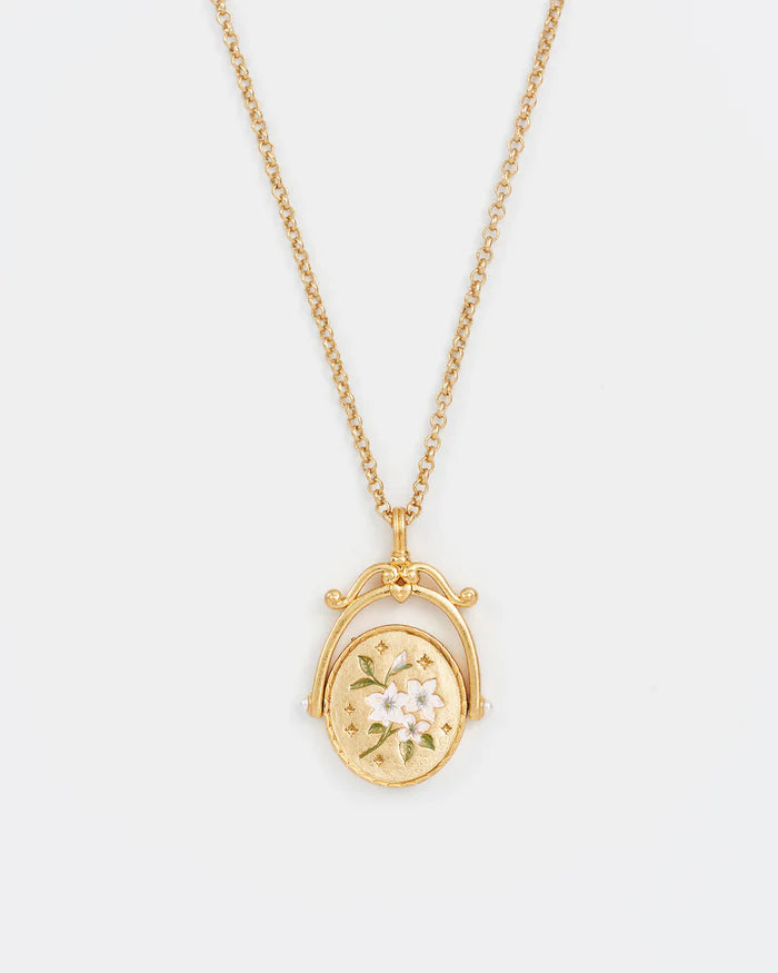 Kétoldalas medál: az egyik oldalán egy klasszikus írott 'J' kezdőbetű látható, a másikon egy finoman kézzel festett jázminvirággal van gravírozva, amely az eleganciát és a kecsességet jelképezi. A sokoldalúságot szem előtt tartva tervezett nyaklánc levehető medállal és állítható lánccal rendelkezik.