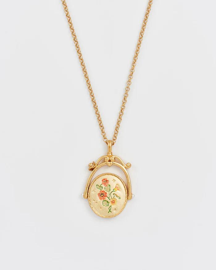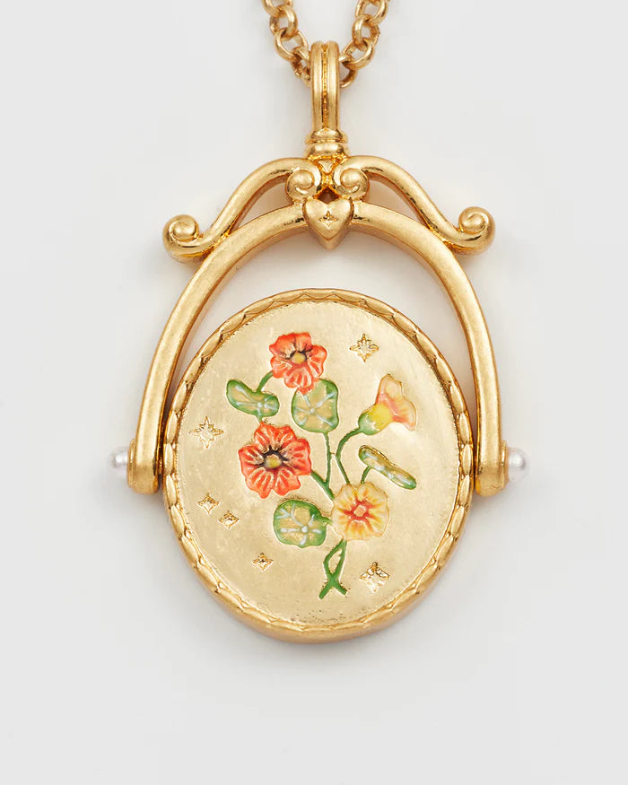 Kétoldalas medál: az egyik oldalán egy klasszikus írott 'N' kezdőbetű látható, a másikon egy finoman kézzel festett sarkantyúka virággal van gravírozva, amely az együttérzést és a kreativitást jelképezi. A sokoldalúságot szem előtt tartva tervezett nyaklánc levehető medállal és állítható lánccal rendelkezik.