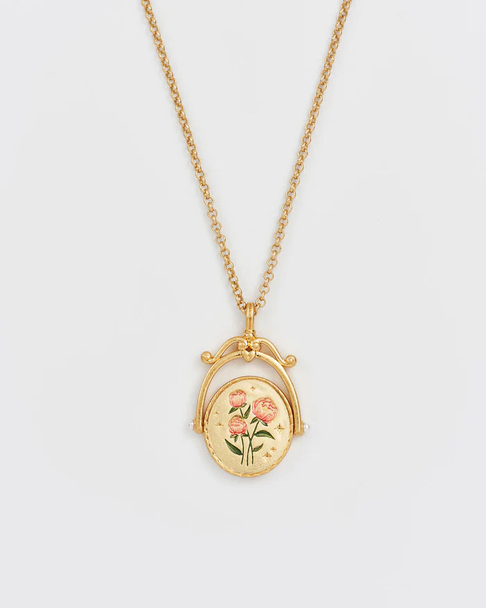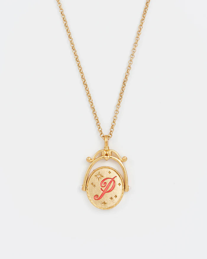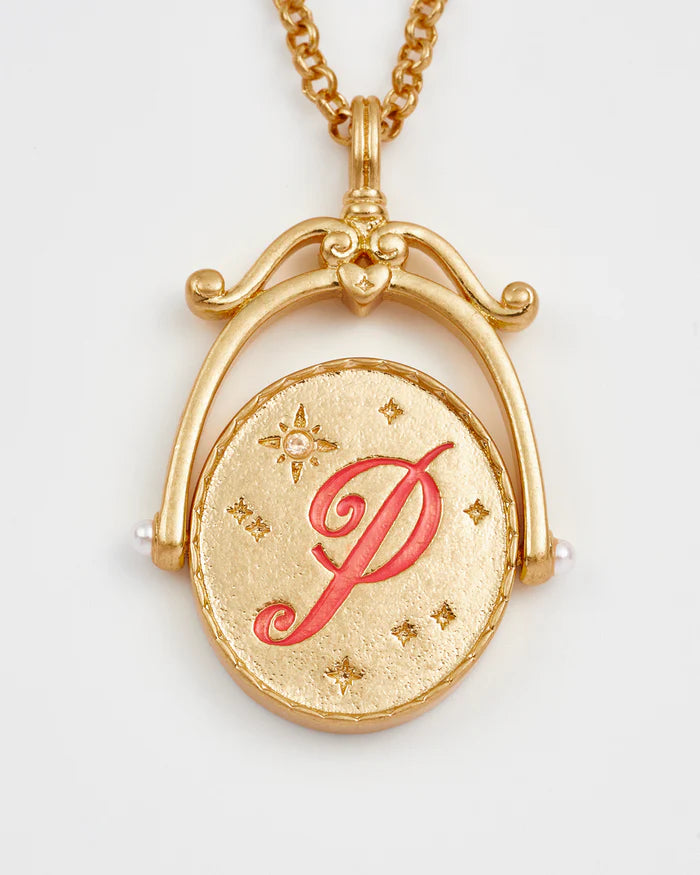 Kétoldalas medál: az egyik oldalán egy klasszikus írott 'P' kezdőbetű látható, a másikon egy finoman kézzel festett bazsarózsa virág látható, amely a jólét és a szerencse szimbóluma. A sokoldalúságot szem előtt tartva tervezett nyaklánc levehető medállal és állítható lánccal rendelkezik.