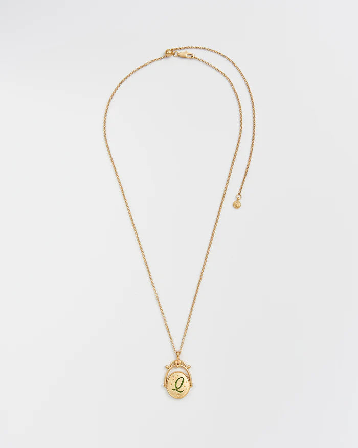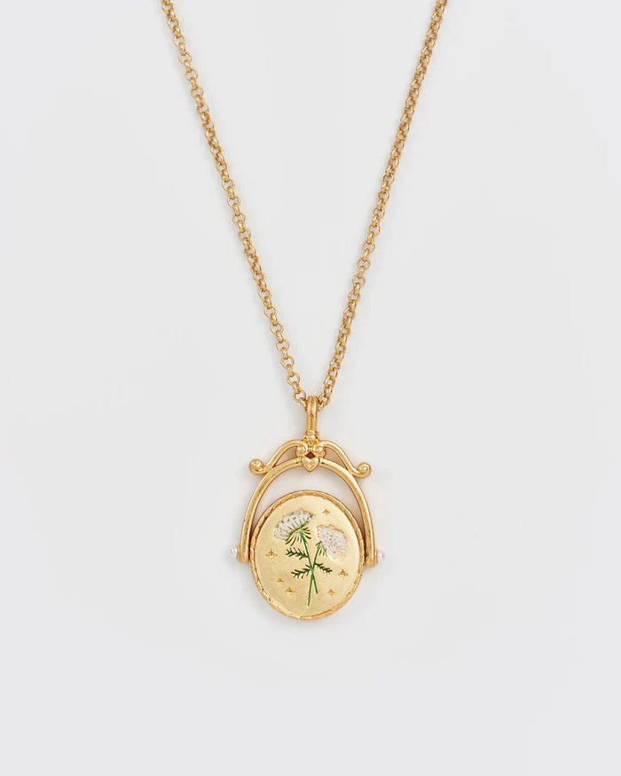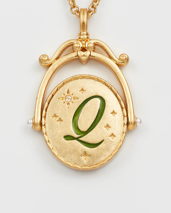 Kétoldalas medál: az egyik oldalán egy klasszikus írott 'Q' kezdőbetű látható, a másikon finoman kézzel festett Anna királynő csipkevirága látható, a menedék és a biztonság szimbóluma. A sokoldalúságot szem előtt tartva tervezett nyaklánc levehető medállal és állítható lánccal rendelkezik.