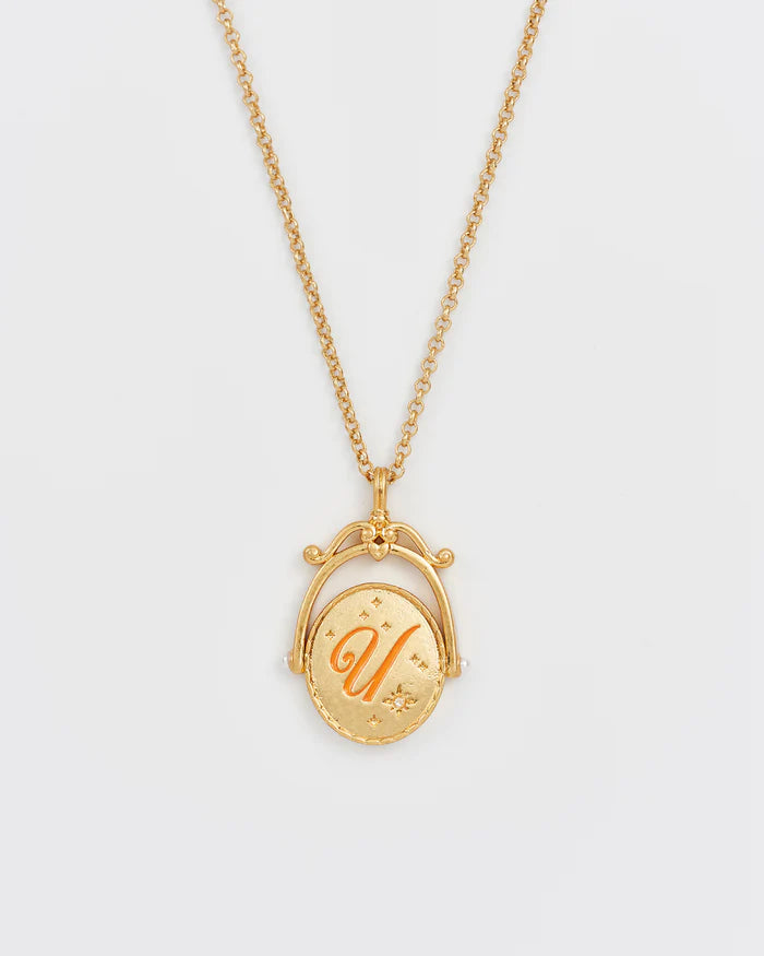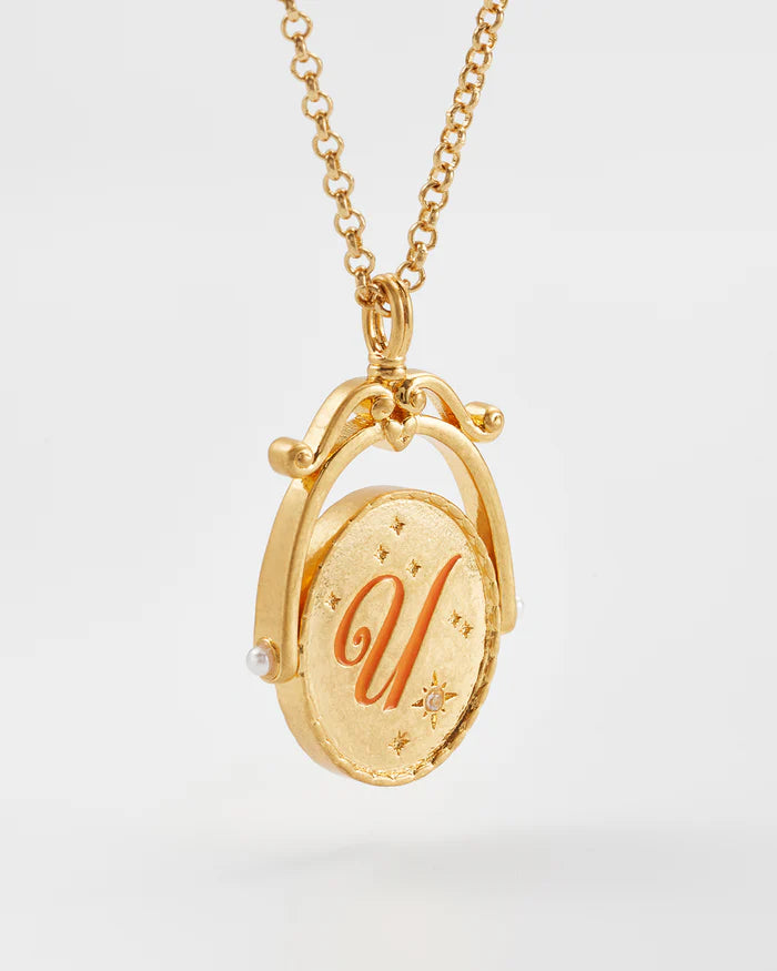 "U" Kezdőbetűs aranyozott nyaklánc virágmotívummal