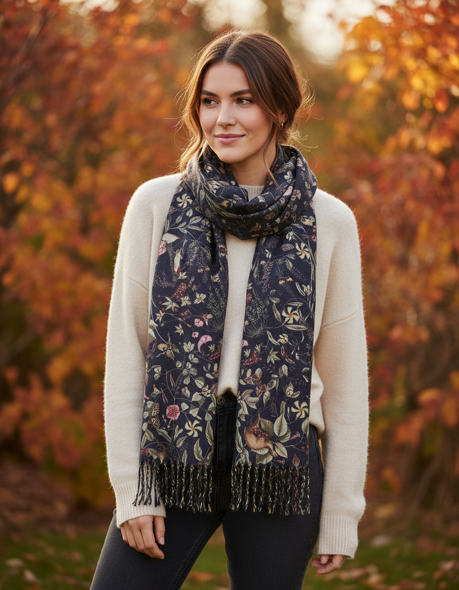 Egy titokzatos, éjszakai erdőt idéző, részletesen kidolgozott, nőies, virágos botanikai minta díszíti, egy csipet Fable varázslattal.