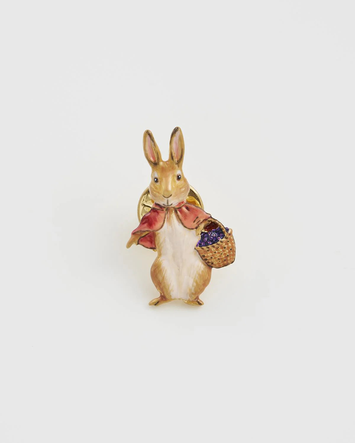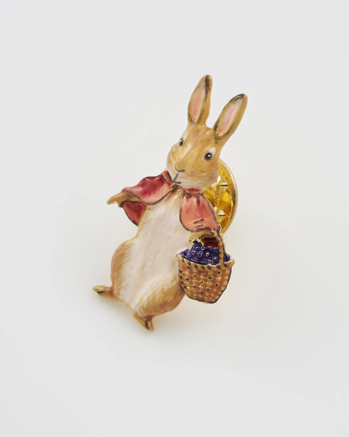Érett, lédús szederrel teli kosarával Pamacs buzgón ugrál hazafelé egy finom lakoma reményében. Ez a varázslatos nyuszi bross, amelyet aprólékosan, magas minőségű zománccal kézzel festettek, az exkluzív Fable England X Nyúl Péter kollekció kiemelkedő darabja. A részletgazdag vonások tökéletesen megragadják Pamapcs mesés világának esszenciáját, így különleges kiegészítővéjé válik a mese rajongóinak.