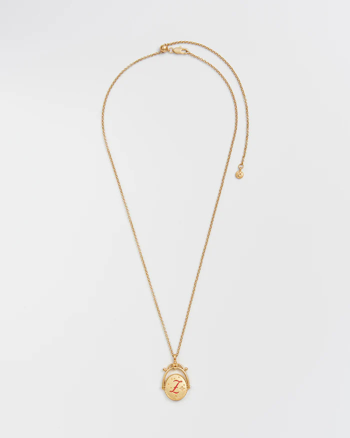 Ez a vintage stílusú aranyozott nyaklánc forgatható medállal egy különleges darab, amely jelentőségteljes ajándék vagy személyes emléktárgy lehet annak, aki viseli.