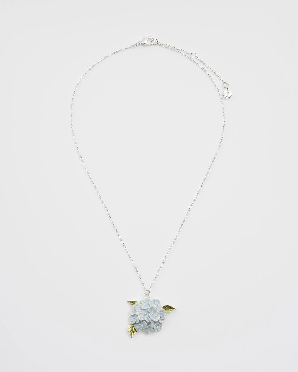 Ez a csodálatos nyaklánc a brit kertészeti világ ikonját, az angol virágoskertek egyik legnépszerűbb virágját a hortenziát jeleníti meg.