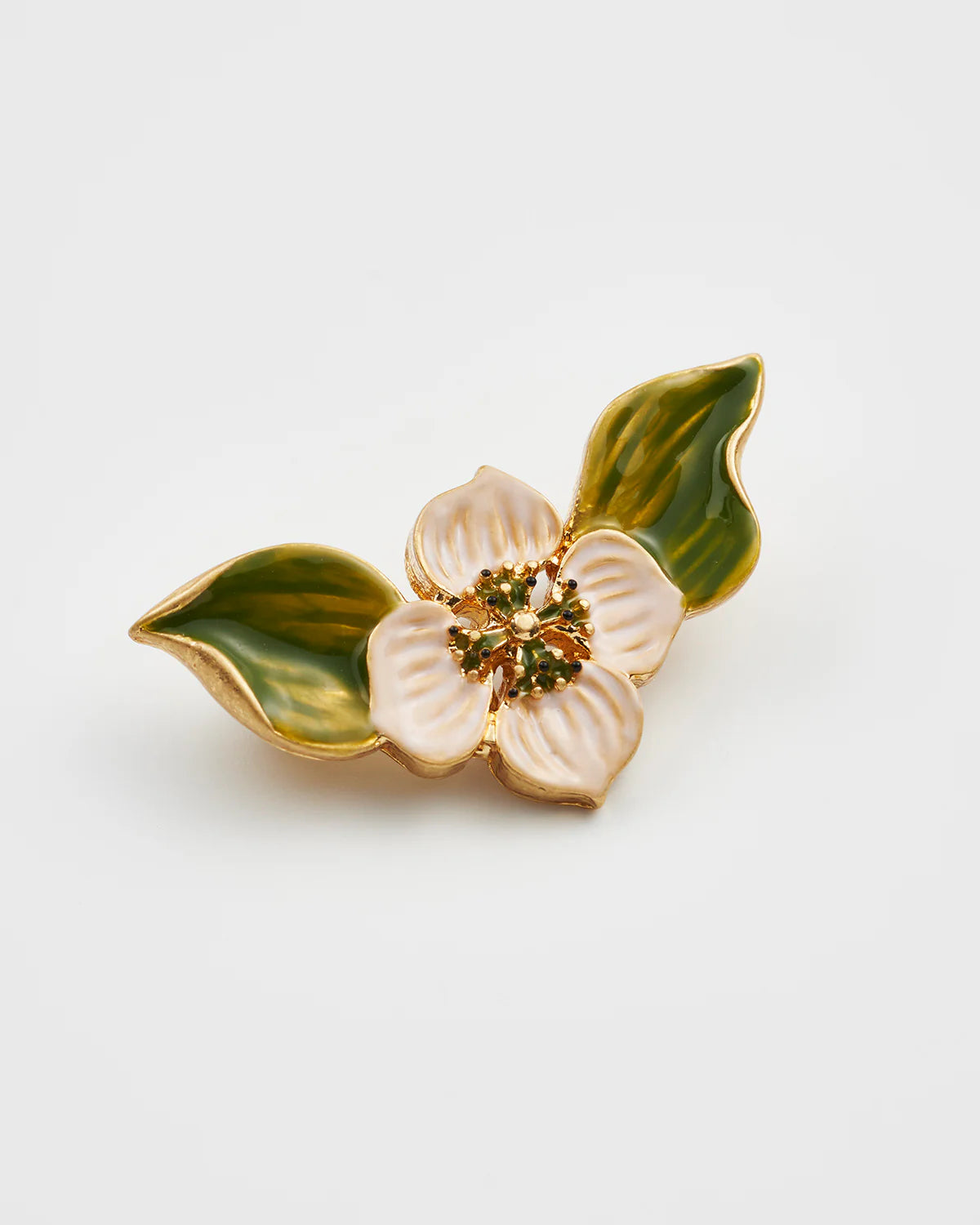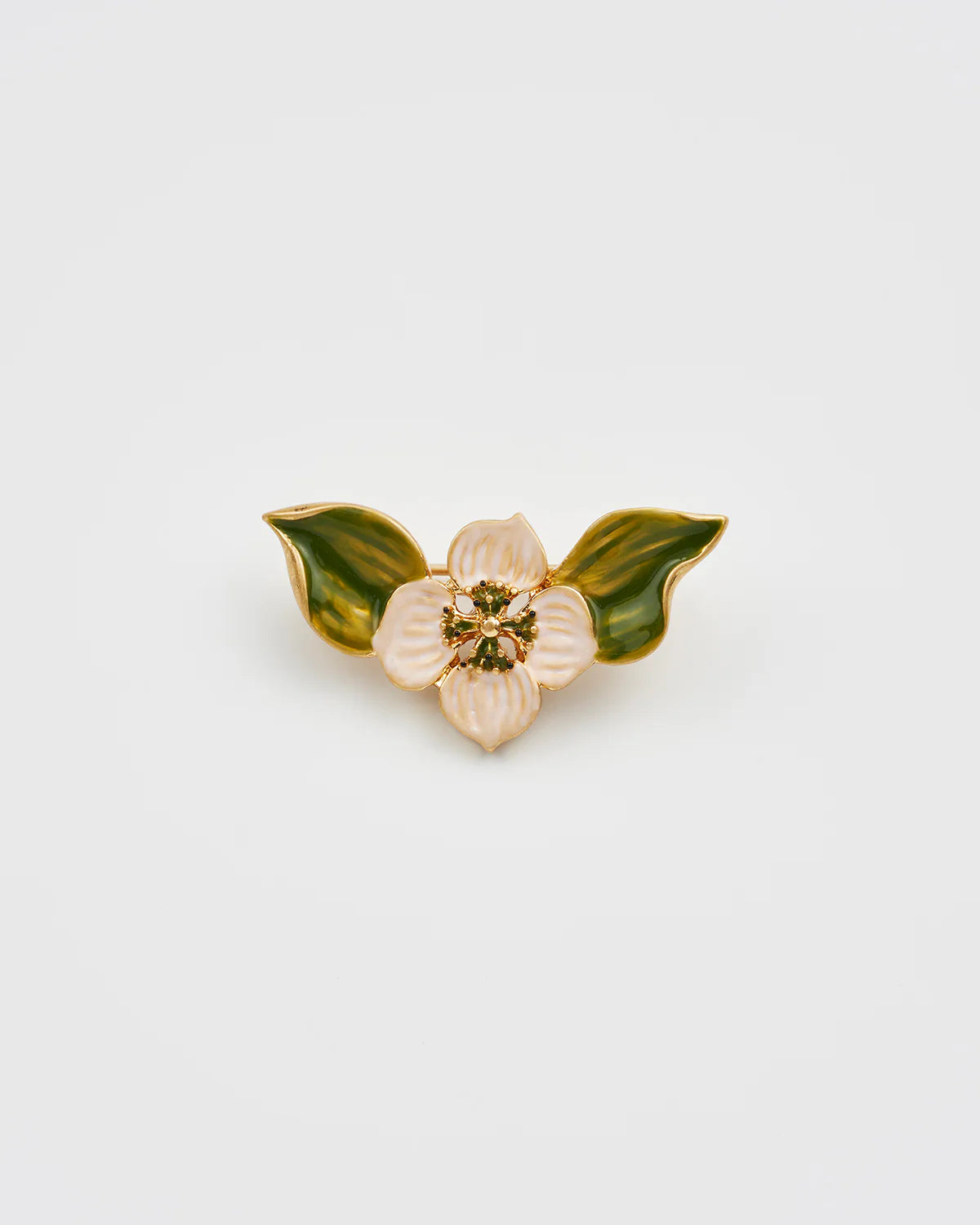 Egy lágy, fehér szellőrózsa nyíladozik két kézzel festett zöld levélke között. A 22 karátos koptatott arannyal bevont sárgarézből készült szépséges bross részletes zománckidolgozással egy visszafogott, mégis feltűnő darab lehet megjelenésedben. Tűzd a kabátodra, a kalapodra vagy a blúzodra és vigyél egy kis bájt a természet kincsestárából a mindennapokba!