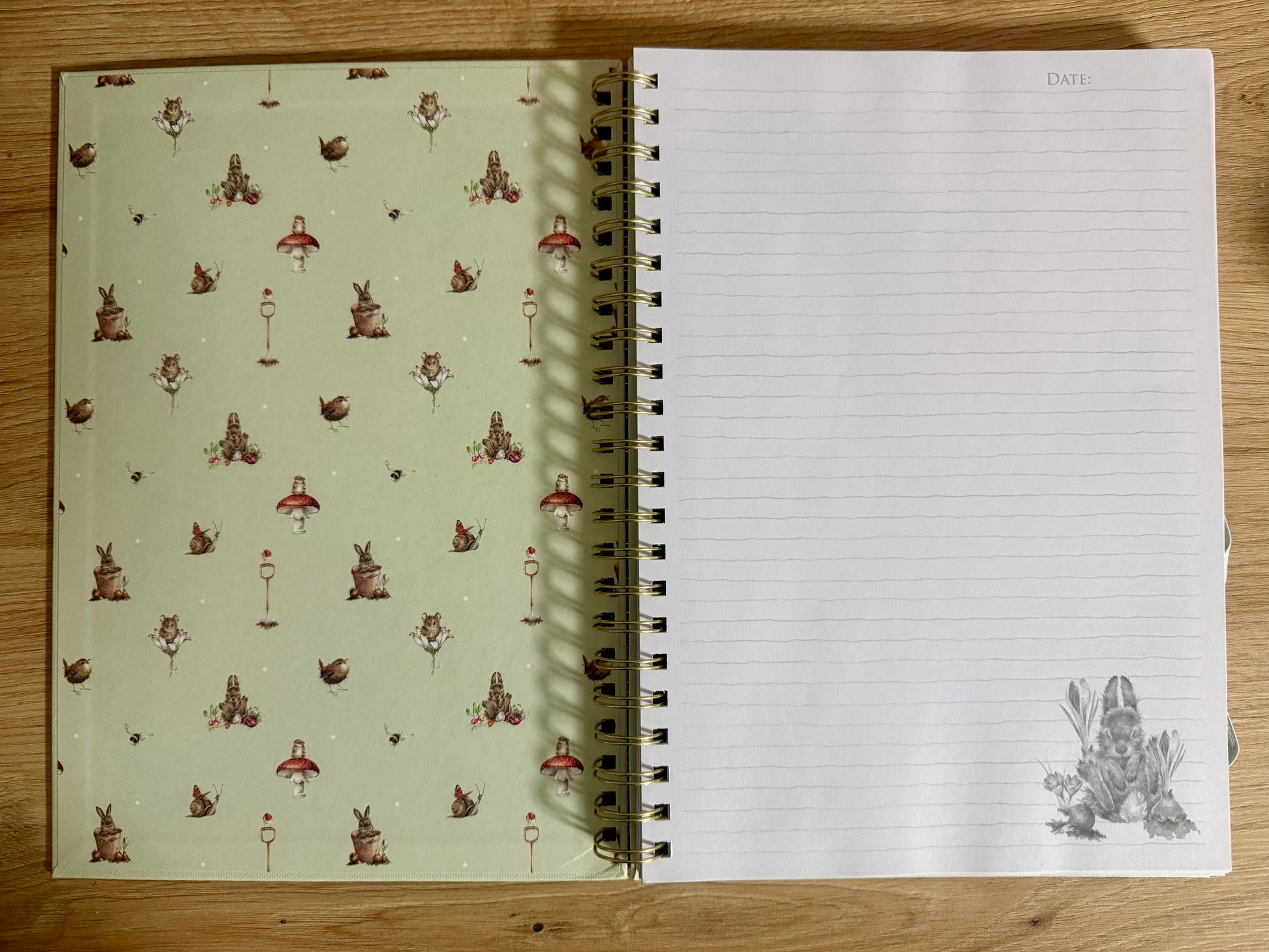 Wrendale Designs - A4 Jegyzetfüzet - Nyuszi virágokkal (zöld)